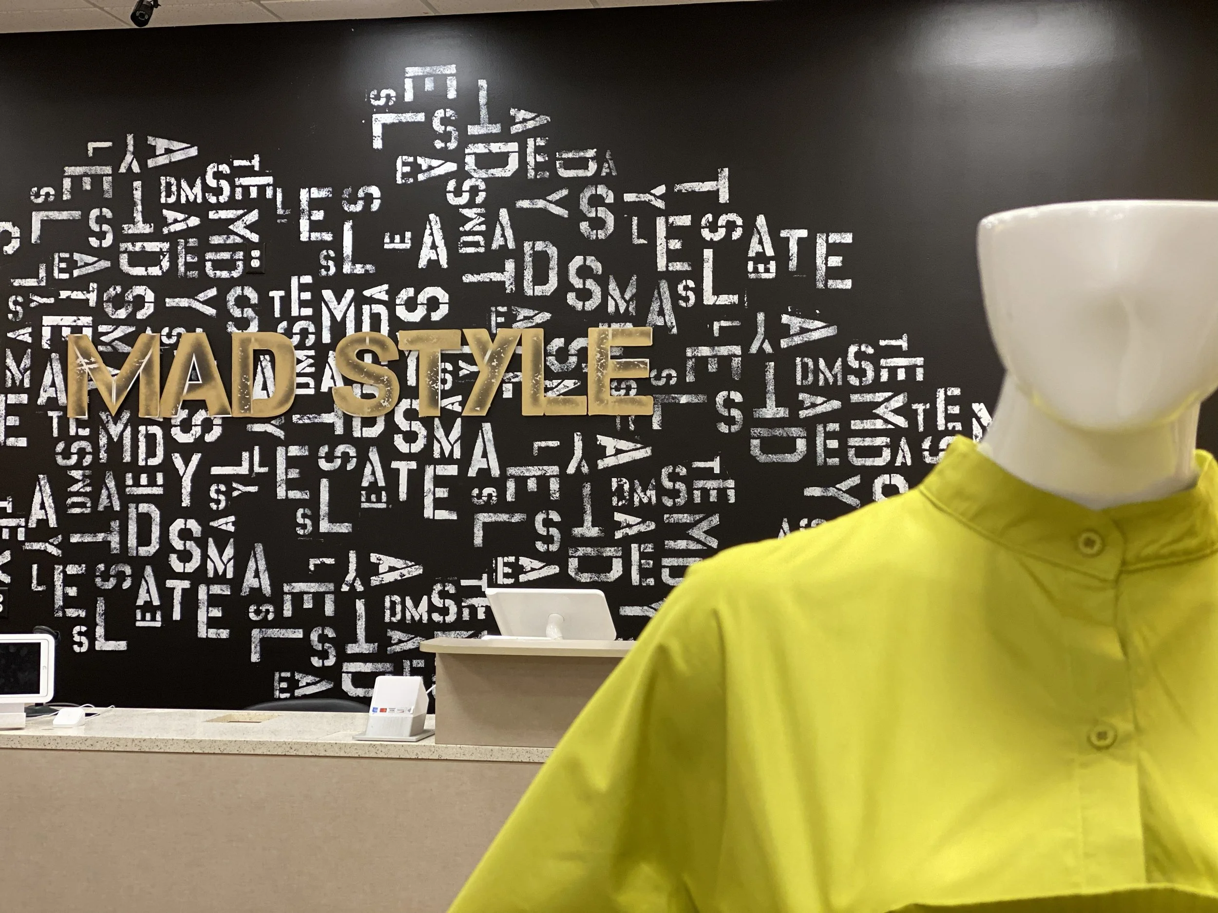 We introduced a custom graphic language built from the brand itself, layering letterforms from “Mad Style” into hand-painted, graffiti-inspired wall installations. The result feels expressive and urban, with enough refinement to stay elevated and intentional. A black-and-white foundation anchors the space and creates contrast against the bold merchandise, allowing the product to take center stage while the environment adds depth and texture. Throughout the store, energy and restraint work together to create a space that feels immersive, cohesive, and distinctly on-brand.